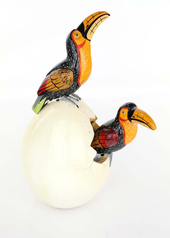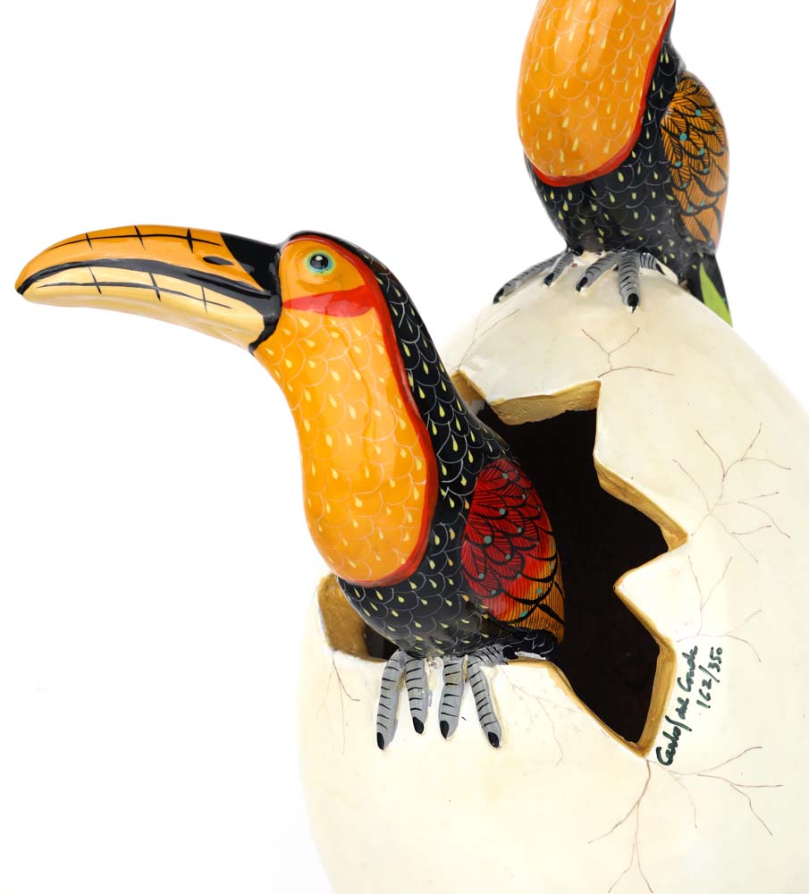 Carlos Del Condro Uovo con tucani Ceramica cm h 31x23x16 Firma e numerazione "Carlos dal Condro 162/350"