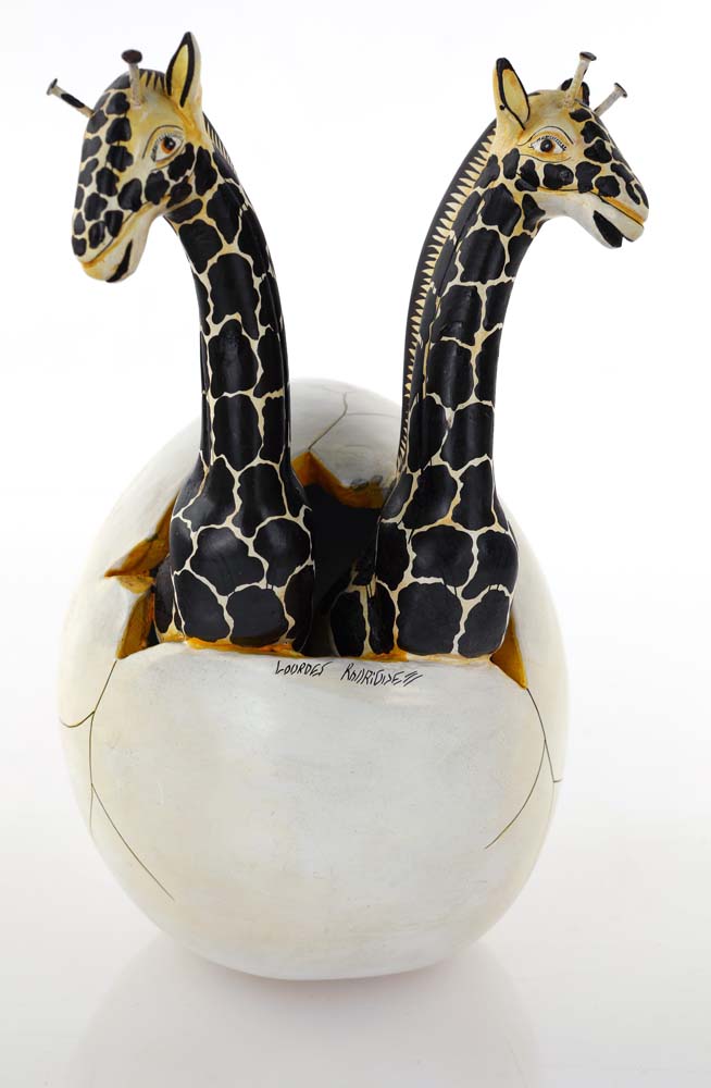 Lourdes Rodriguez Uovo e due giraffe Ceramica cm h 17x12x11 Firma "Lourdes...