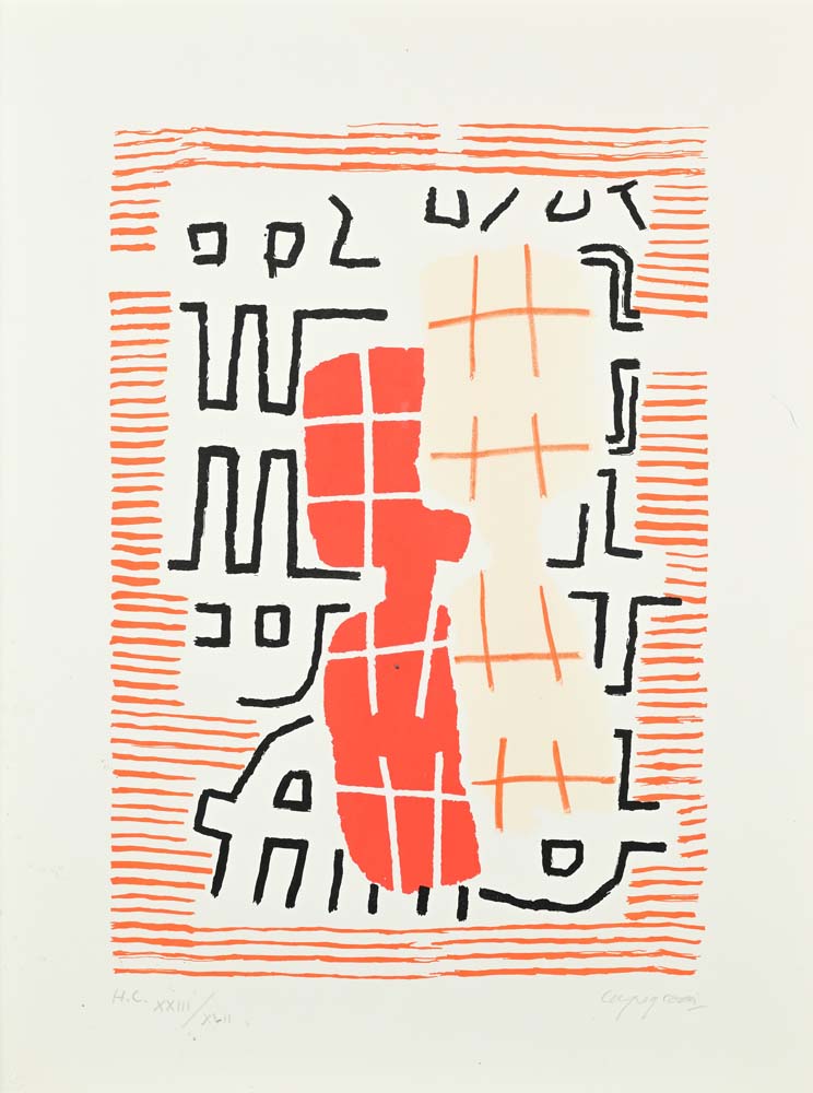 Giuseppe Capogrossi Roma 1900-Roma 1972 Senza titolo Litografia cm 65x50 - in cornice cm 70x55 Firma e numerazione "Capogrossi H.C. XXIII/XLII". Timbro dello stampatore 2RC Capogrossi, Das graphische Werk, pag. 61 n, 52