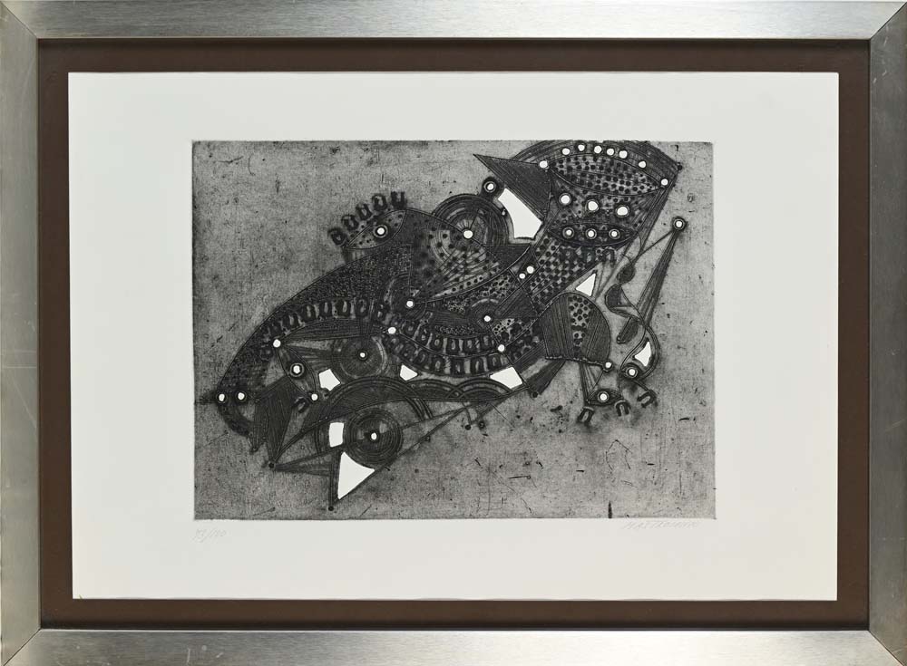 Umberto Mastroianni Fontana Liri 1910-Marino 1998 Senza titolo Acquaforte cm 44x64 - in cornice cm 55x75 Firma e numerazione "Mastroianni 73/100"