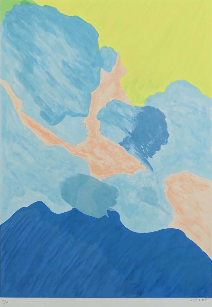 Giulio Turcato Mantova 1912-Roma 1995 Senza titolo Serigrafia cm 69x49 Firma in basso a destra "Turcato". Numerazione in basso a sinistra "p.a.". Dedica al centro "A Walter Mazzilli con amicizia, Giulio Turcato"