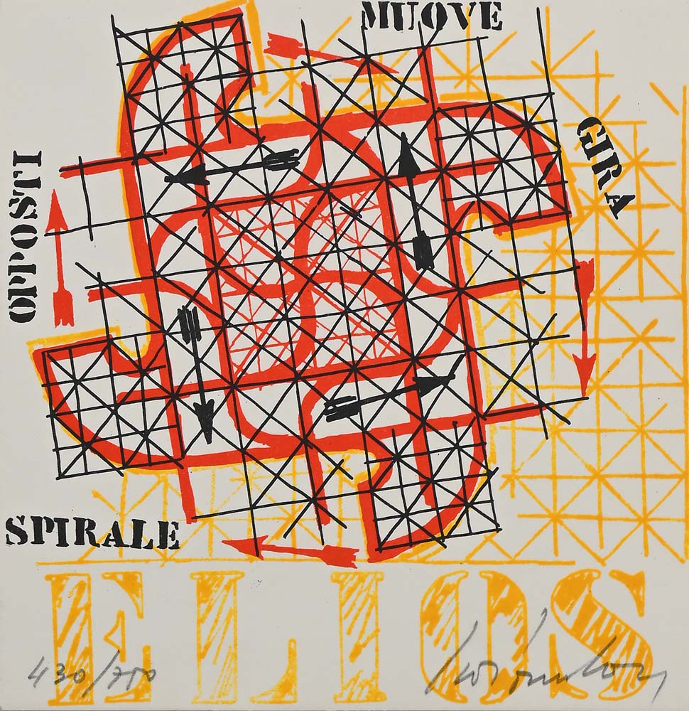 Giò Pomodoro Orciano di Pesaro 1930-Milano 2002 Spirale Opposti Muove Gira Serigrafia cm 21x21 Firma e numerazione "Giò Pomodoro 430/750"