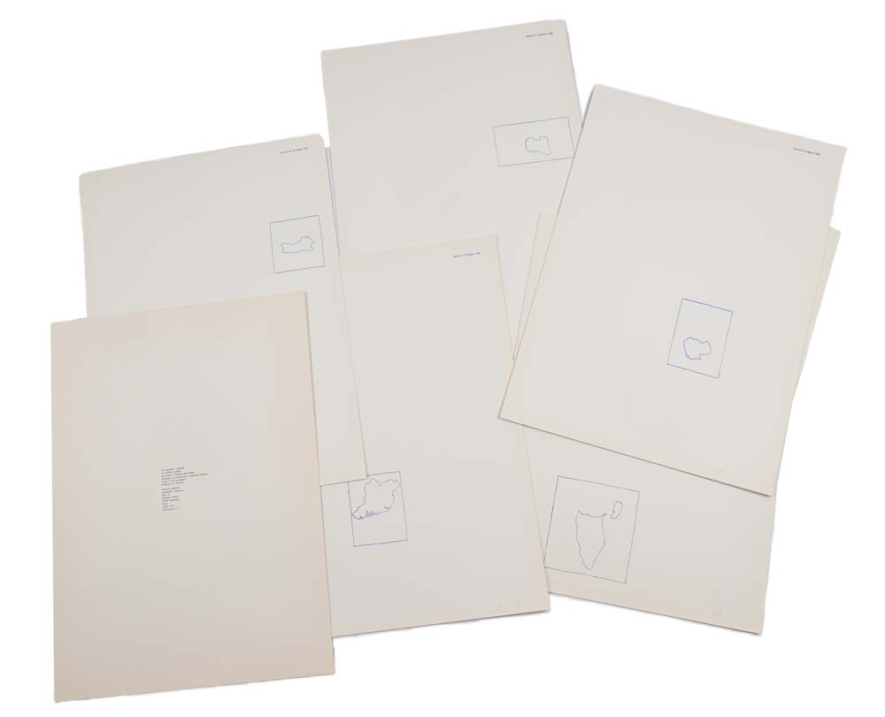 Alighiero Boetti Torino 1940-Roma 1994 Territori Occupati 1971 Serigrafia getto manuale cm 59x42,5 l'una 12 serigrafie entro cartella originale, ognuna della misura di cm 59x42,5. Firmate e numerate " /99 Boetti". Il colophon riporta la numerazione n.51 Si ringrazia l'archivio Alighiero Boetti per l'aiuto nella catalogazione dell'opera