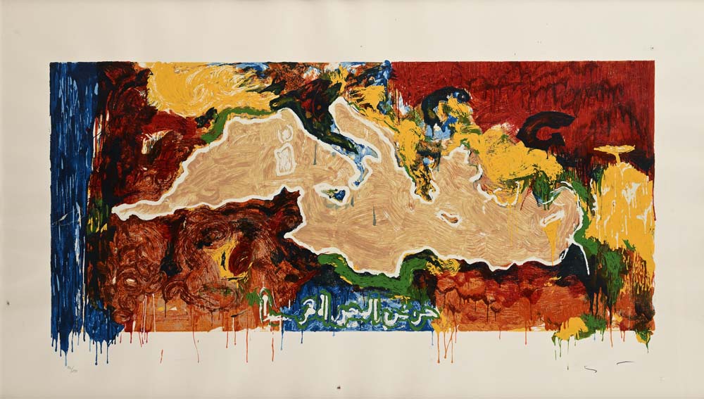 Mario Schifano Homs 1934-Roma 1998 Senza titolo Serigrafia polimaterica cm 70x120 - in cornice cm 80x130 Firma e numerazione "Schifano 84/199"