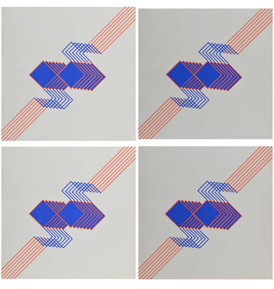 Beppe Bonetti Rovato 1951 Lotto di 4 serigrafie 1981 Ognuna misura cm 50x50 circa. Tutte sono firmate, datate e numerate 28/45; 44/45; 26/45; 27/45