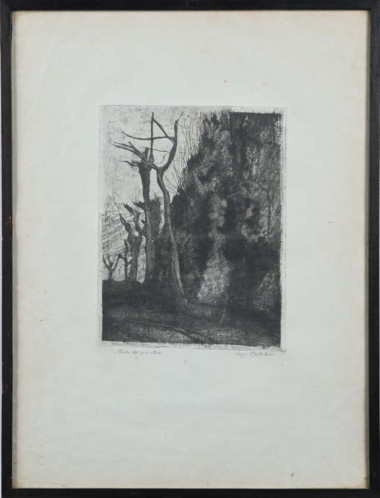 Luigi Bartolini Cupramontana 1892-Roma 1963 Strada del cacciatore Acquaforte cm 24x18,8 (lastra) - con cornice cm 49x37 Firma e titolo "Luigi Bartolini, Strada del Cacciatore"