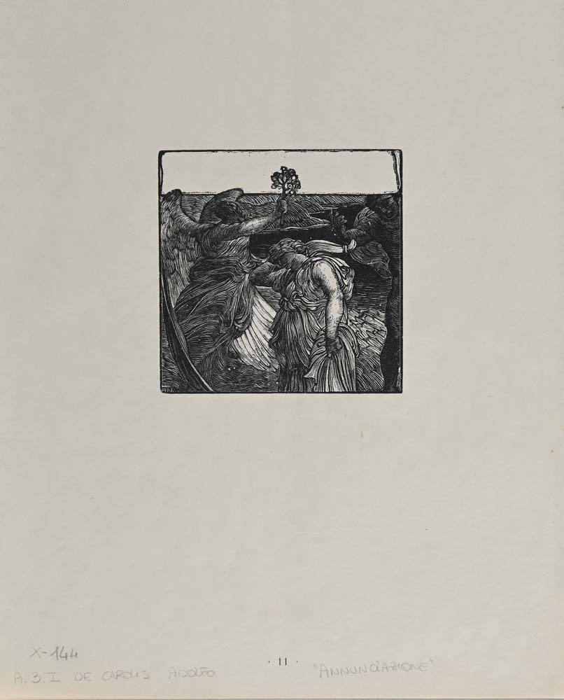 Adolfo De Carolis Montefiore Dell'Aso 1874-Roma 1928 Annunciazione Xilografia cm 30,5x24 Firma in lastra "ADK"