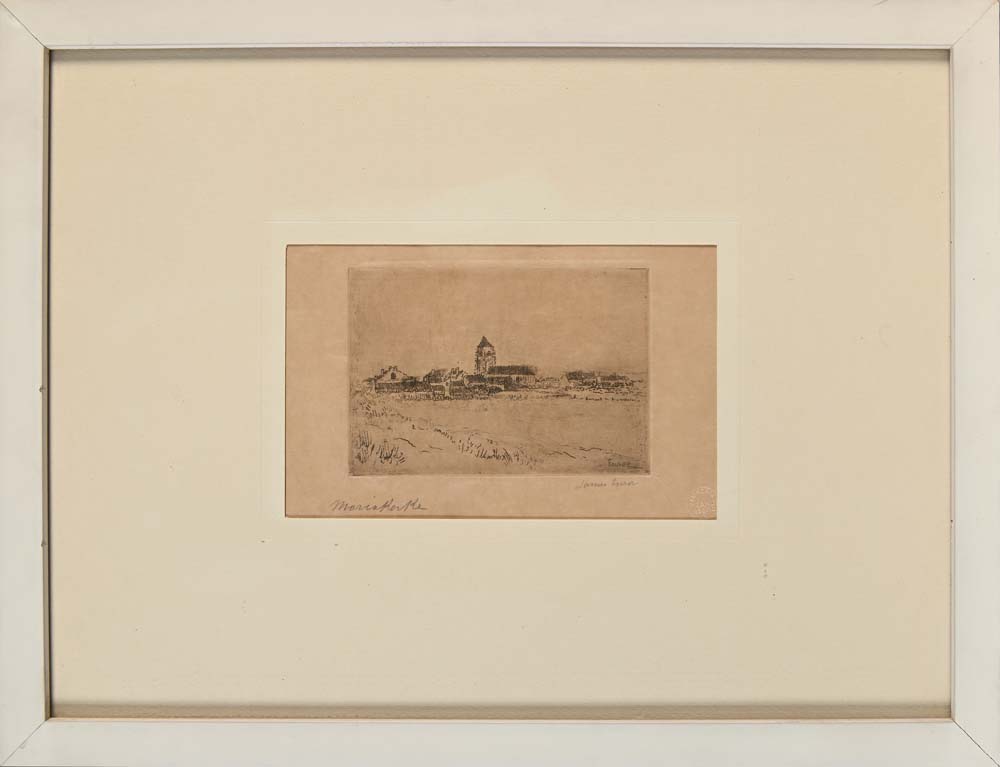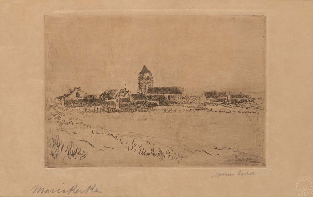 James Ensor Ostenda 1860-Ostenda 1949 Mariakerke 1887 Incisione lastra cm 8,5x13 - in cornice cm 33x43 Firma in lastra "Ensor". Firma e titolo a matita "James Ensor Mariakerke". Timbro a secco "Libreria Prandi Reggio E."