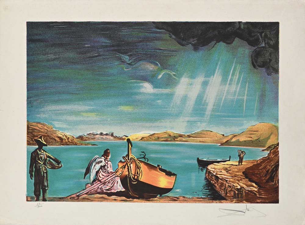 Salvador Dalì Figueres 1904-Figueres 1989 L’Angelo di Port Lligat 1952 Litografia cm 54x74 Firma enumerazione "Dalì 27/300"