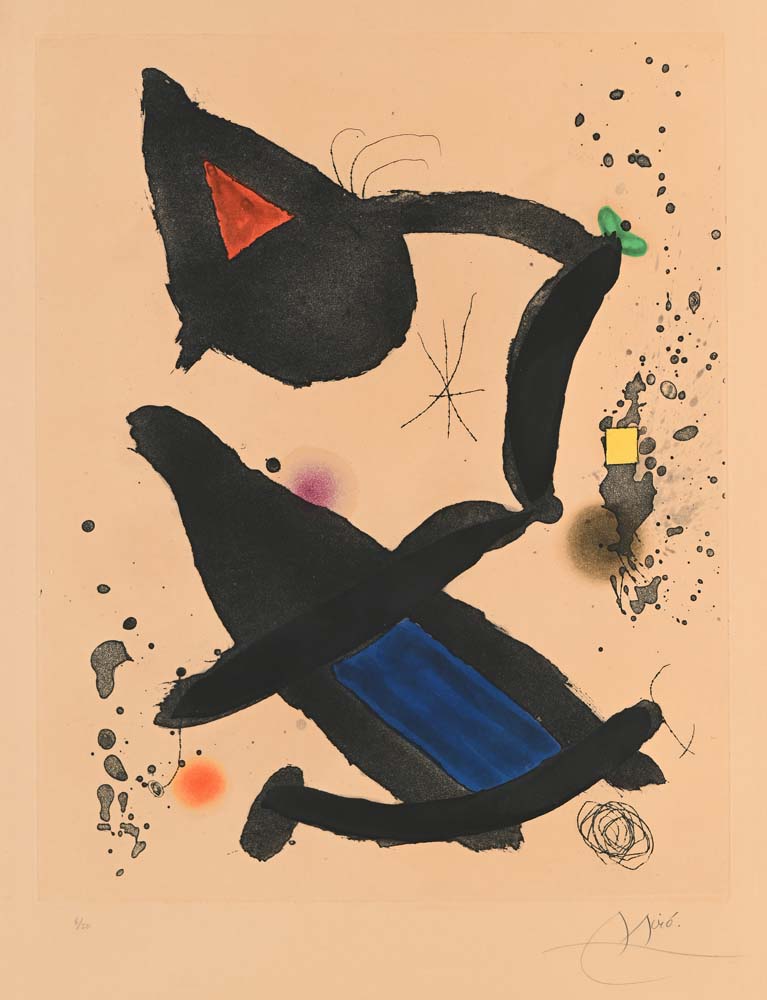 Joan Mirò Barcellona 1893-Palma di Maiorca 1983 Le Roi David 1973-74 Acquaforte/acquatinta cm 91x62 - in cornice cm 94x66 Firma e numerazione "Mirò 6/50" Certificato di autenticità su fotografia rilasciato dalla Selfart srl, Roma
