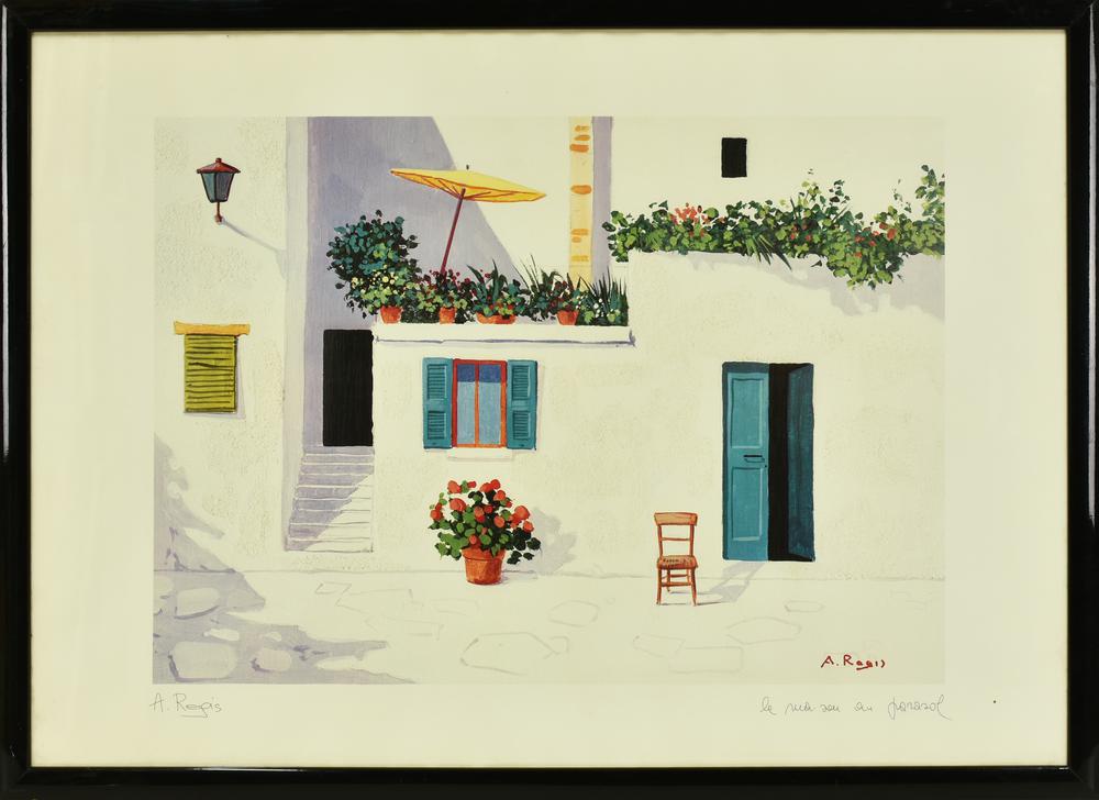 A. Regis INTERNO DI CORTILE litografia su carta, cm 50x70, es. s.t. firma,...