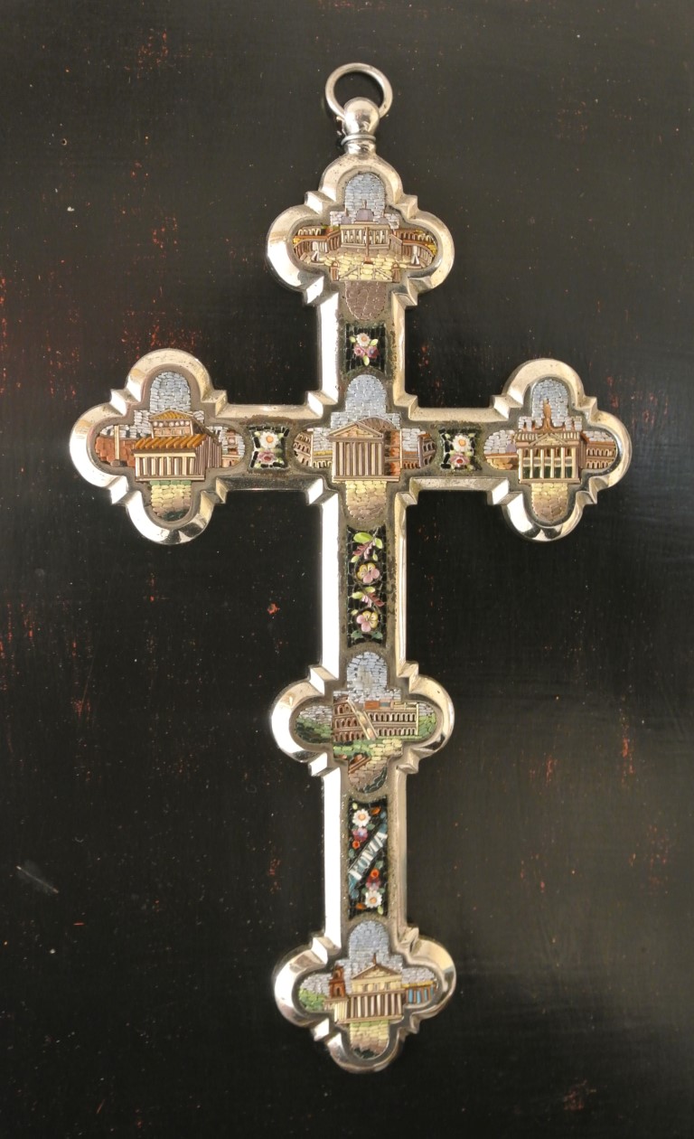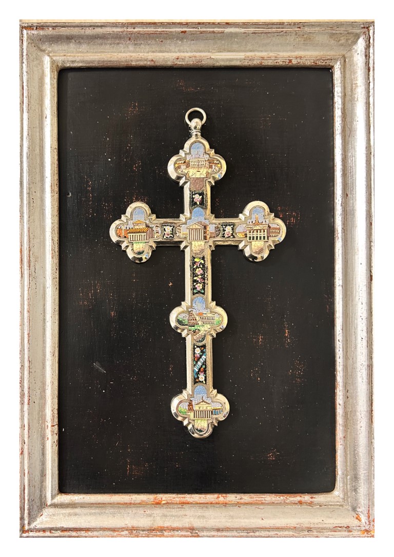 Crocifisso interamente realizzato a miniatura, su pannello in tessuto