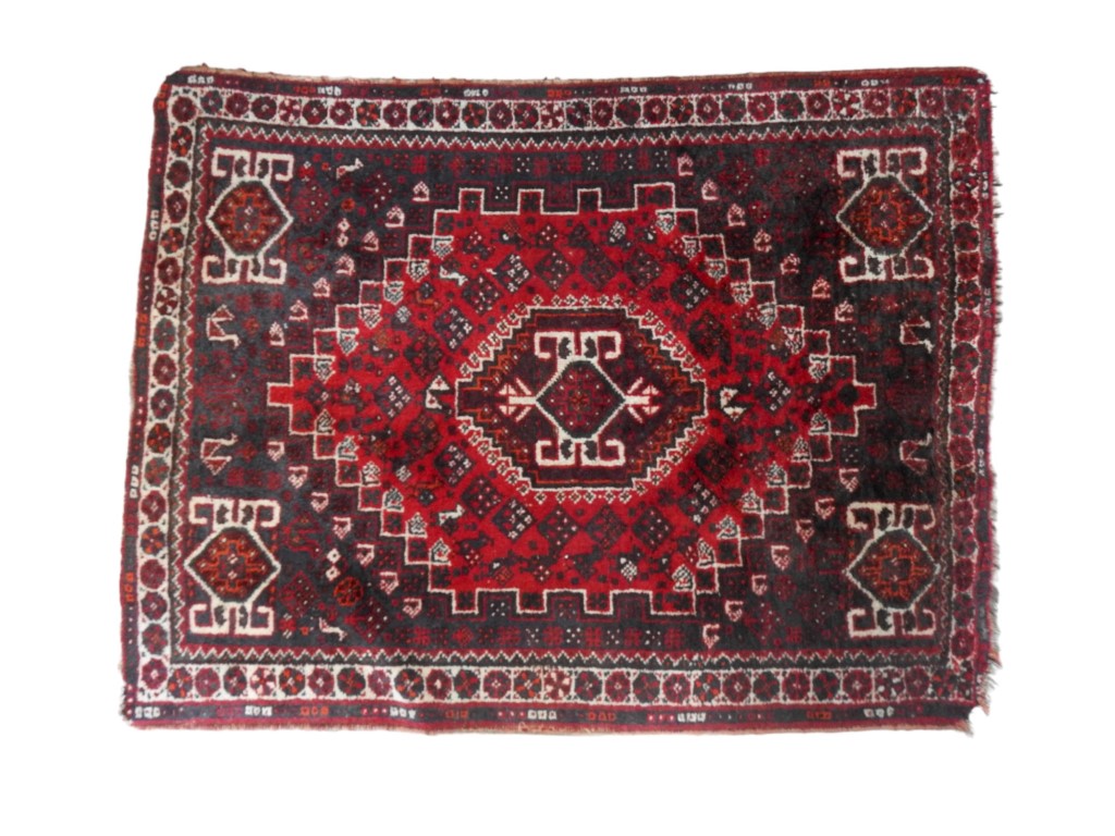 Tappeto di gusto caucasico a fondo rosso