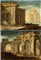 a) Capriccio architettonico con tre figure ed un cannone; b) Capriccio architettonico con una figura seduta e una donna con bambino. Coppia di dipinti XVIII secolo