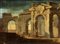 Artista napoletano, XVIII secolo a) Capriccio architettonico con tre figure...