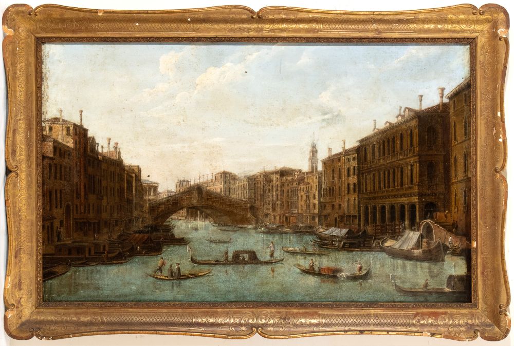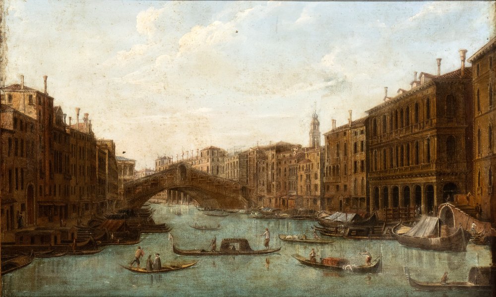 Il Canaletto (seguace di) (Venezia, 1697 - 1768) Veduta del Ponte di Rialto...
