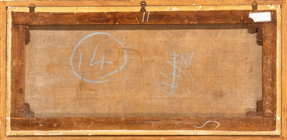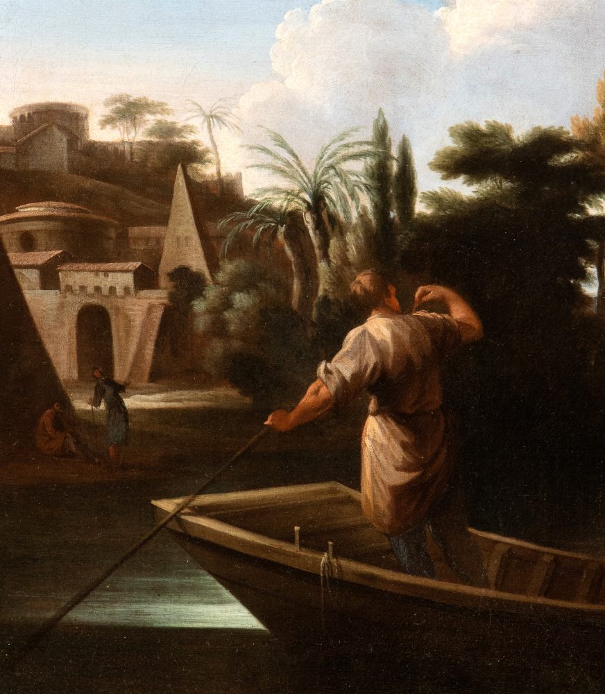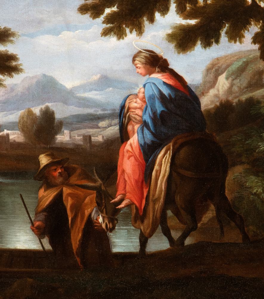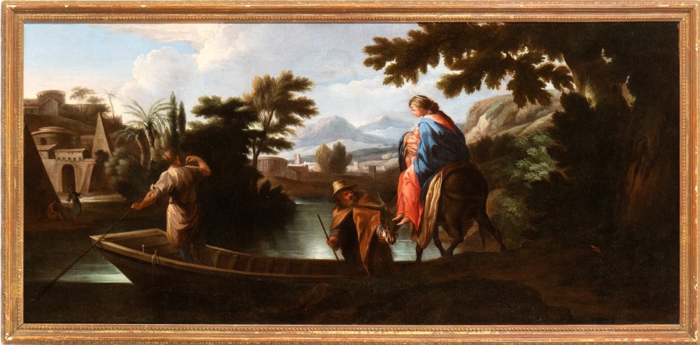 Artista attivo a Roma, XVII secolo Fuga in Egitto Olio su tela cm. 44x93. Con...