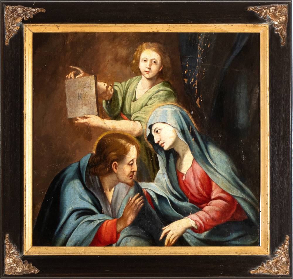 Artista emiliano, XVIII secolo Cristo e la Vergine con un angelo Olio su tela...