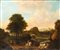 Artista fiammingo, XVIII secolo Paesaggio con cavalieri Olio su tela cm....