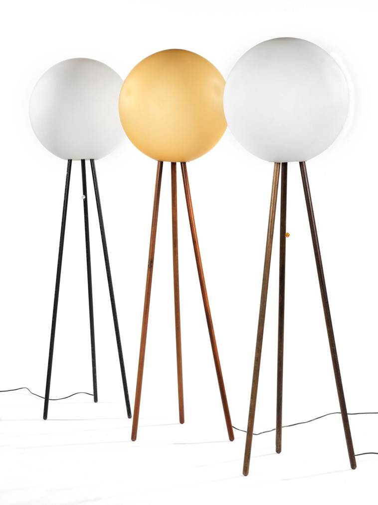 Lotto 63 | Tre lampade da terra a tre gambe Italia, 1950 Treppiedi in legno (2) e in...