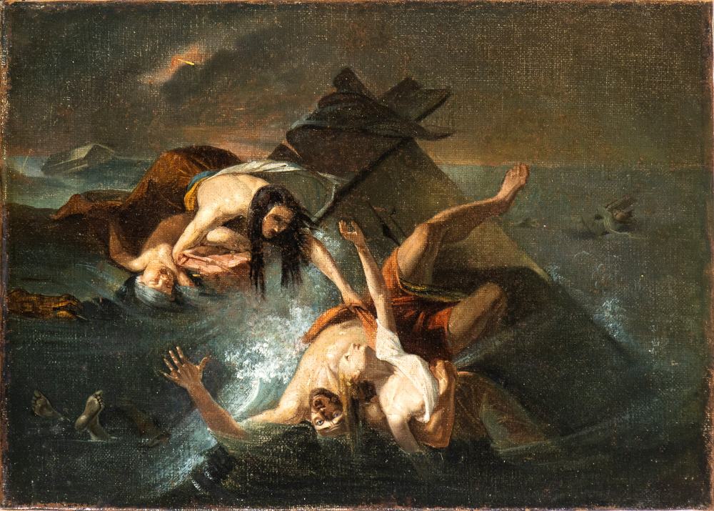 Artista attivo nei primi decenni del XIX secolo Il naufragio di Aiace Olio su...