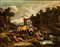 Artista attivo a Roma, XVIII secolo Paesaggio con lavandaie e pastori Olio su...
