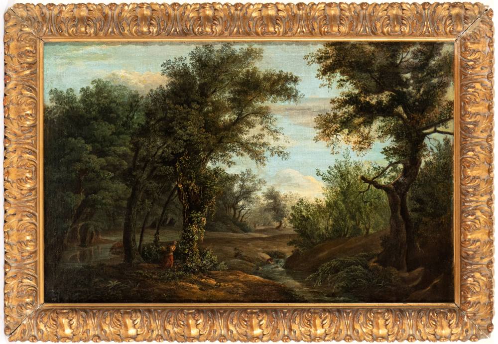 Artista attivo a Roma, XVIII secolo Paesaggio fluviale con figura femminile...