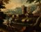 Artista attivo a Roma, XVIII secolo Paesaggio con rudere, torre e figure Olio...