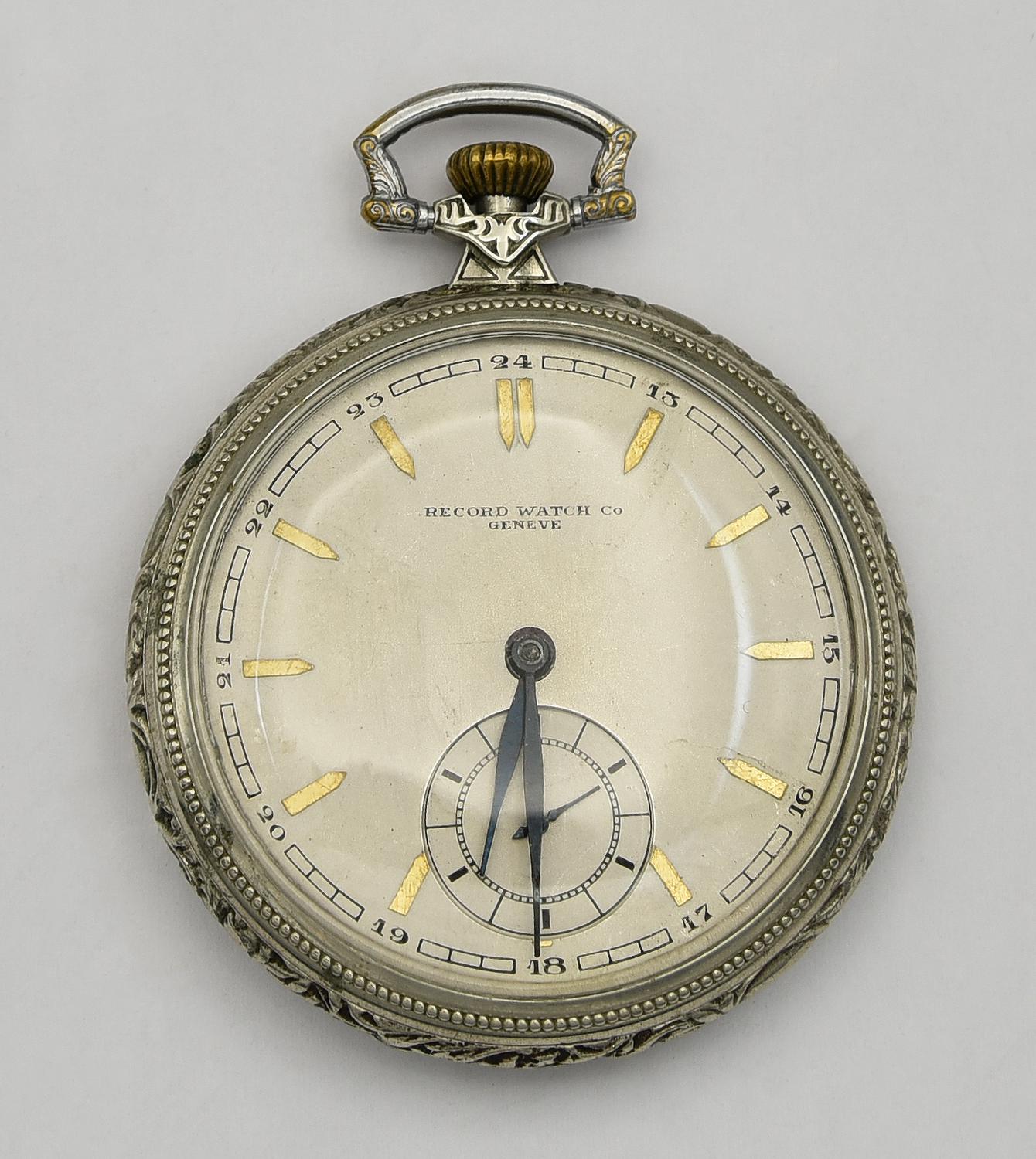 Orologio da tasca in metallo Record Watch Co. Geneve, primi 900