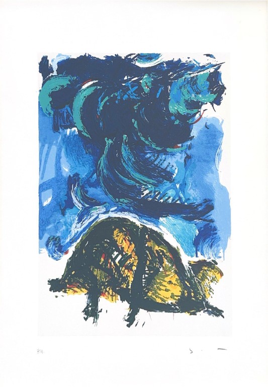 firma a matita in basso a destra timbro a secco con firma Schifano in basso a destra