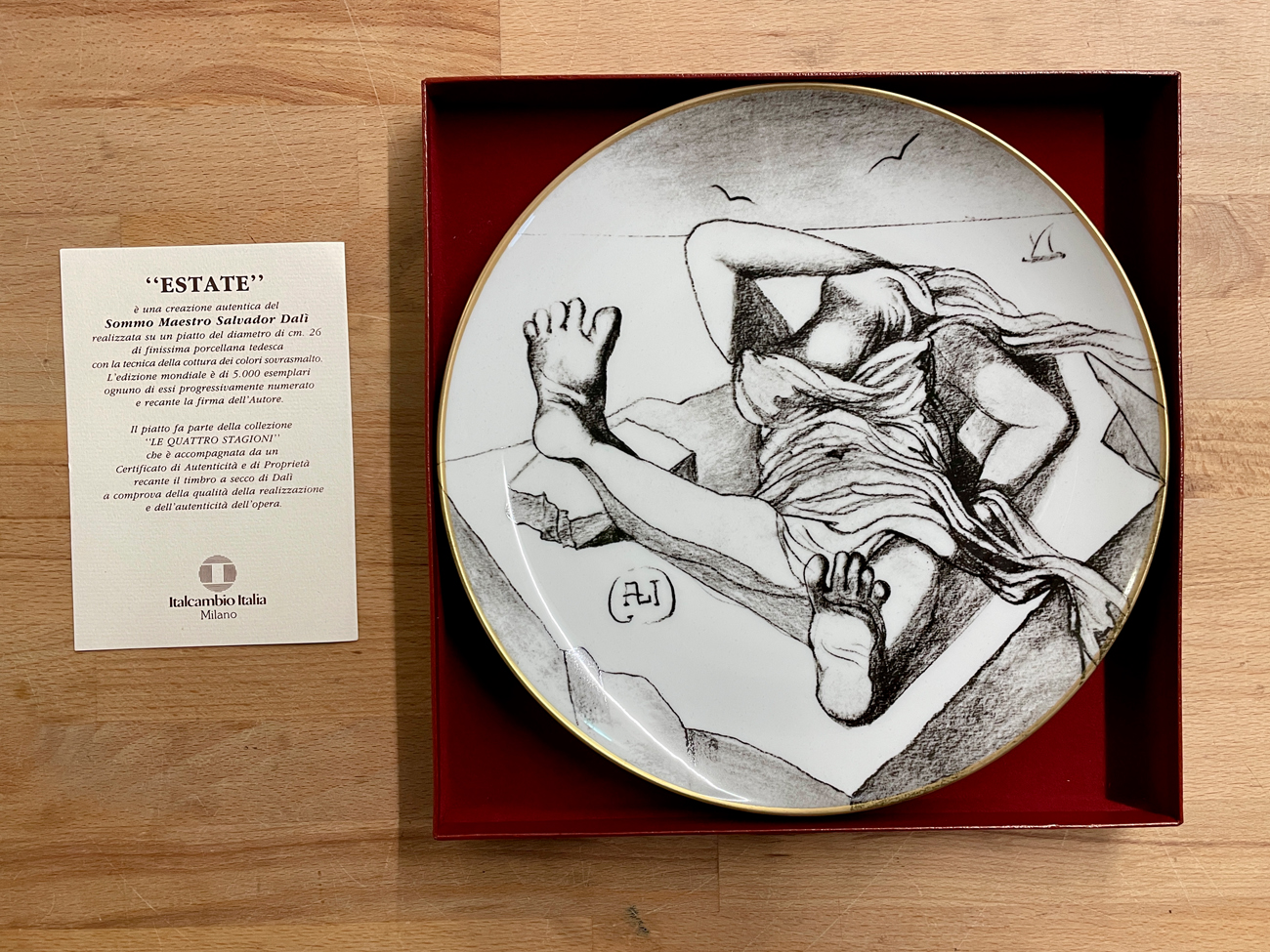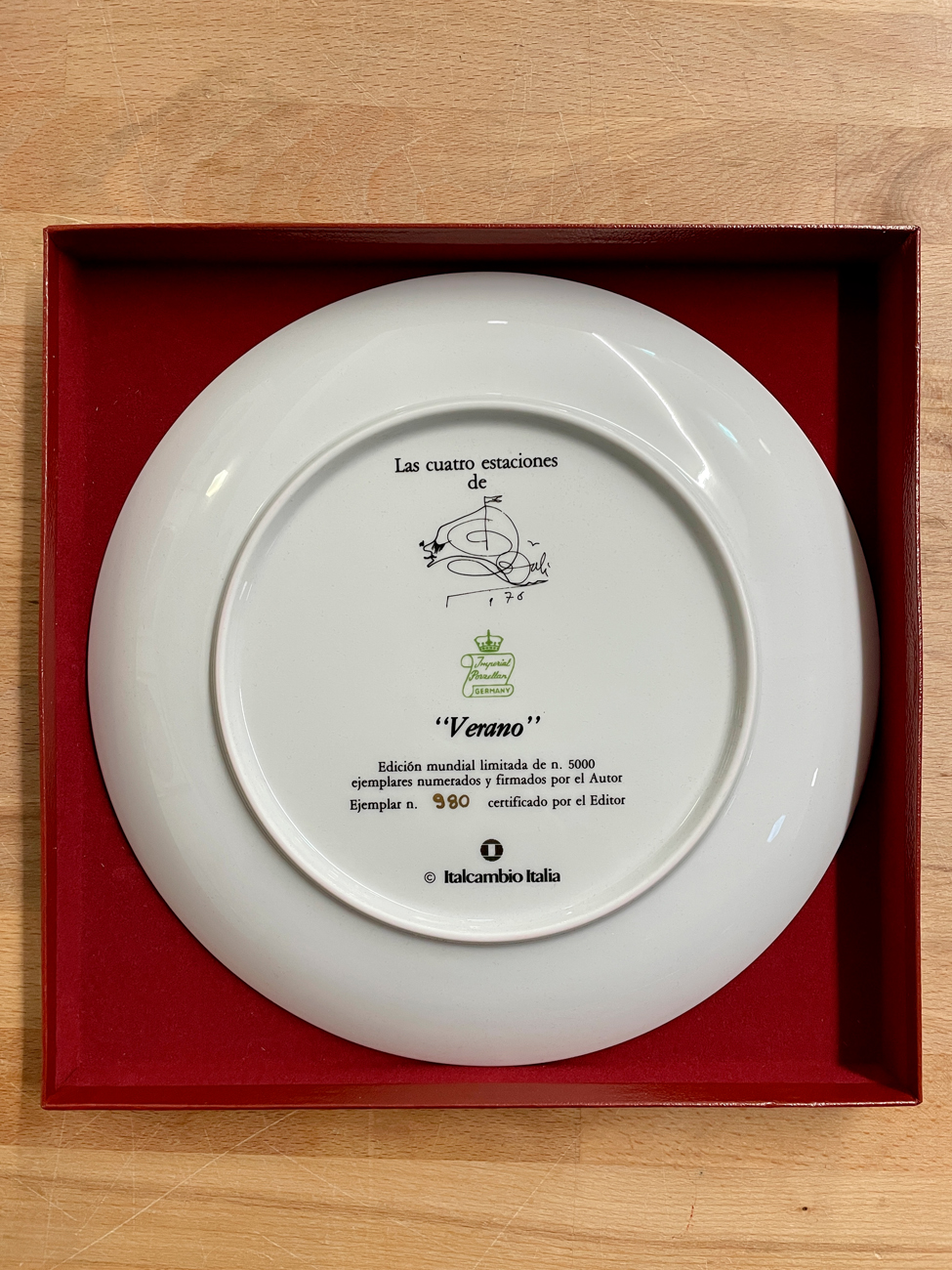 Il piatto fa parte della collezione 'Le Quattro Stagioni' che è accompagnata da un Certificato di Autenticità e di Proprietà recante il timbro a secco di Dalì, comprova della qualità della realizzazione e dell'autenticità dell'opera