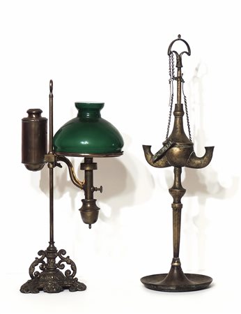 LOTTO fine del XIX secolo una lucerna fiorentina ed un lume ad olio in ottone...