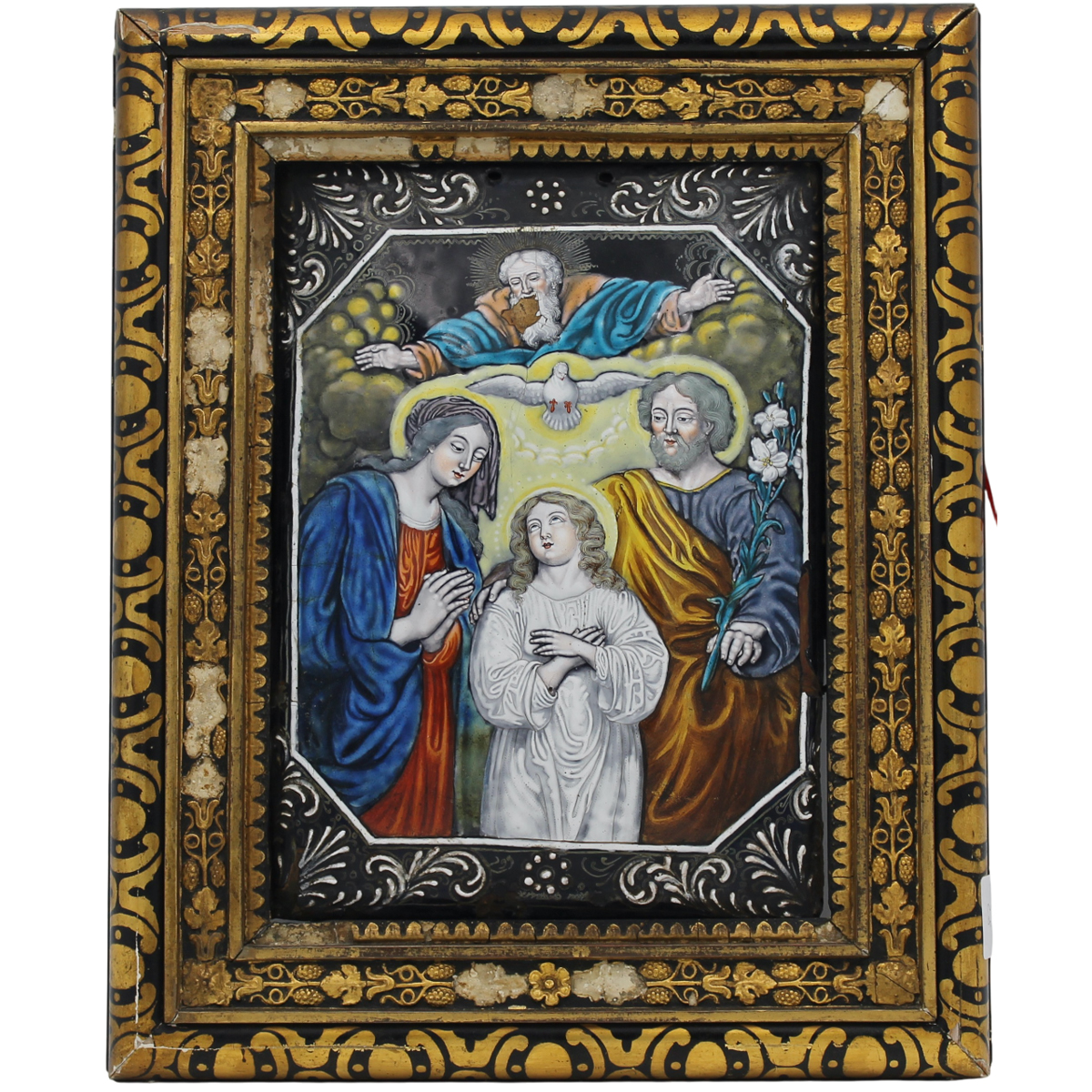 Padre Eterno con la Sacra Famiglia Placca in smalto dipinto in cornice in...