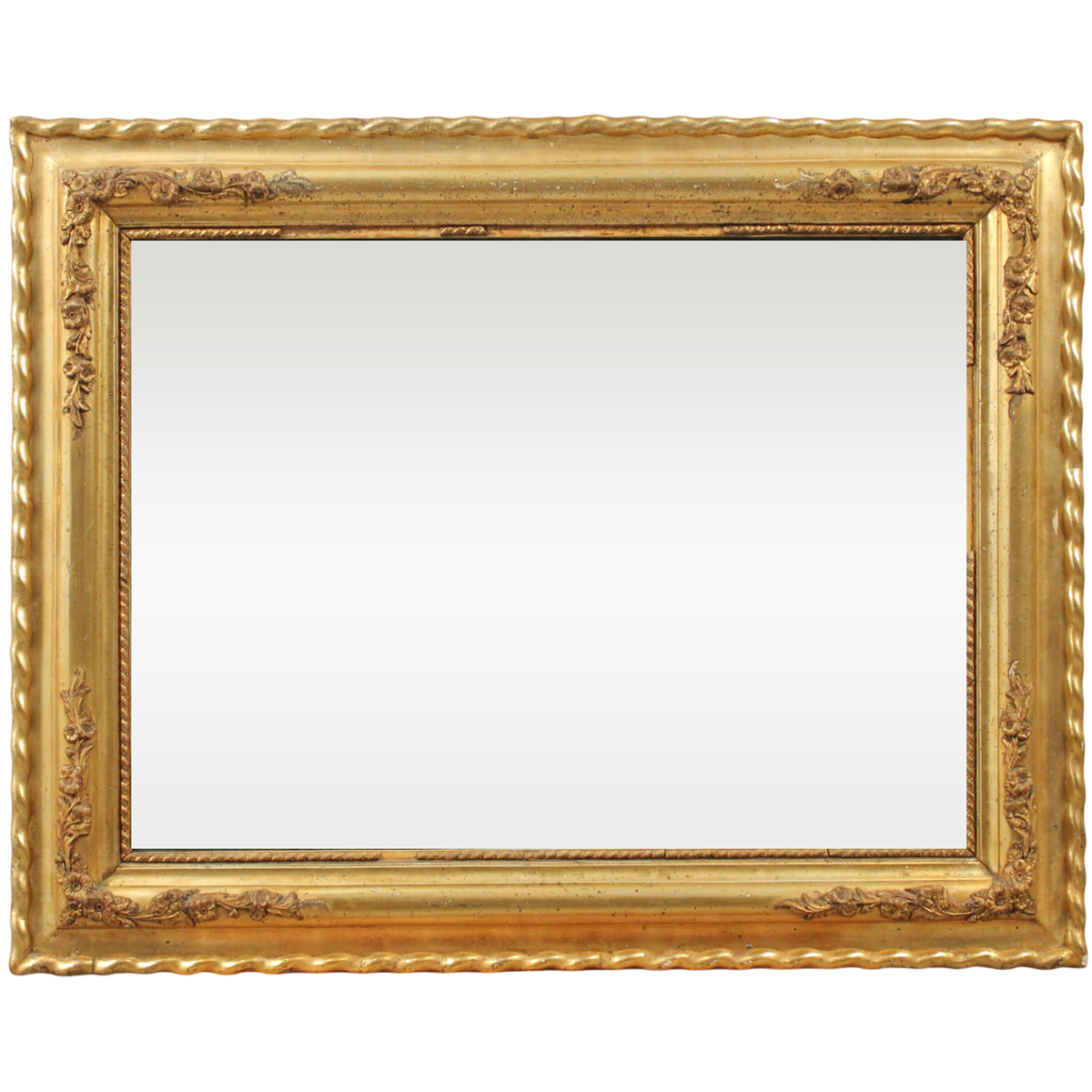 Specchiera Legno dorato e scolpito a motivi floreali a rilievo. Francia. Secolo XIX. Cm 70x53