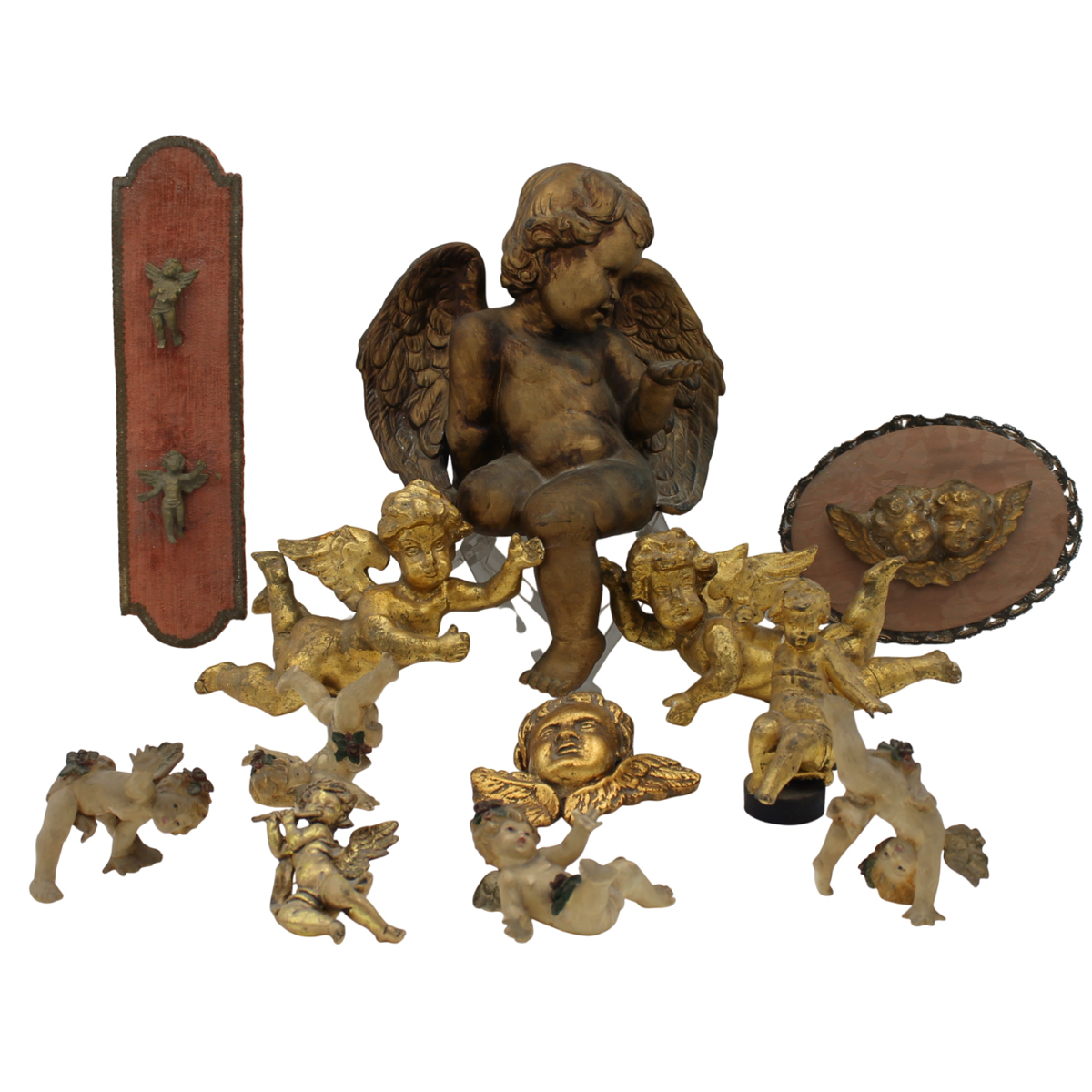 Lotto di putti Porcellana e legno scolpito e dorato. Secolo XX