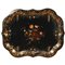 Vassoio Metallo decorato a mitivi floreali e vegetali con applicazioni di madreperla. Sicilia. Fine secolo XIX. CM 68x52