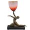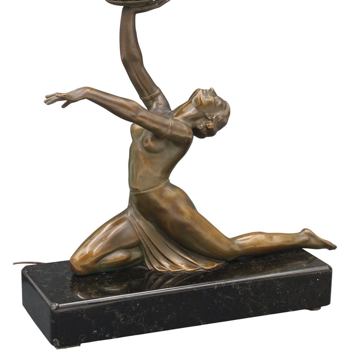 Lume con figura femminile Scultura in bronzo patinato su base in marmo con...