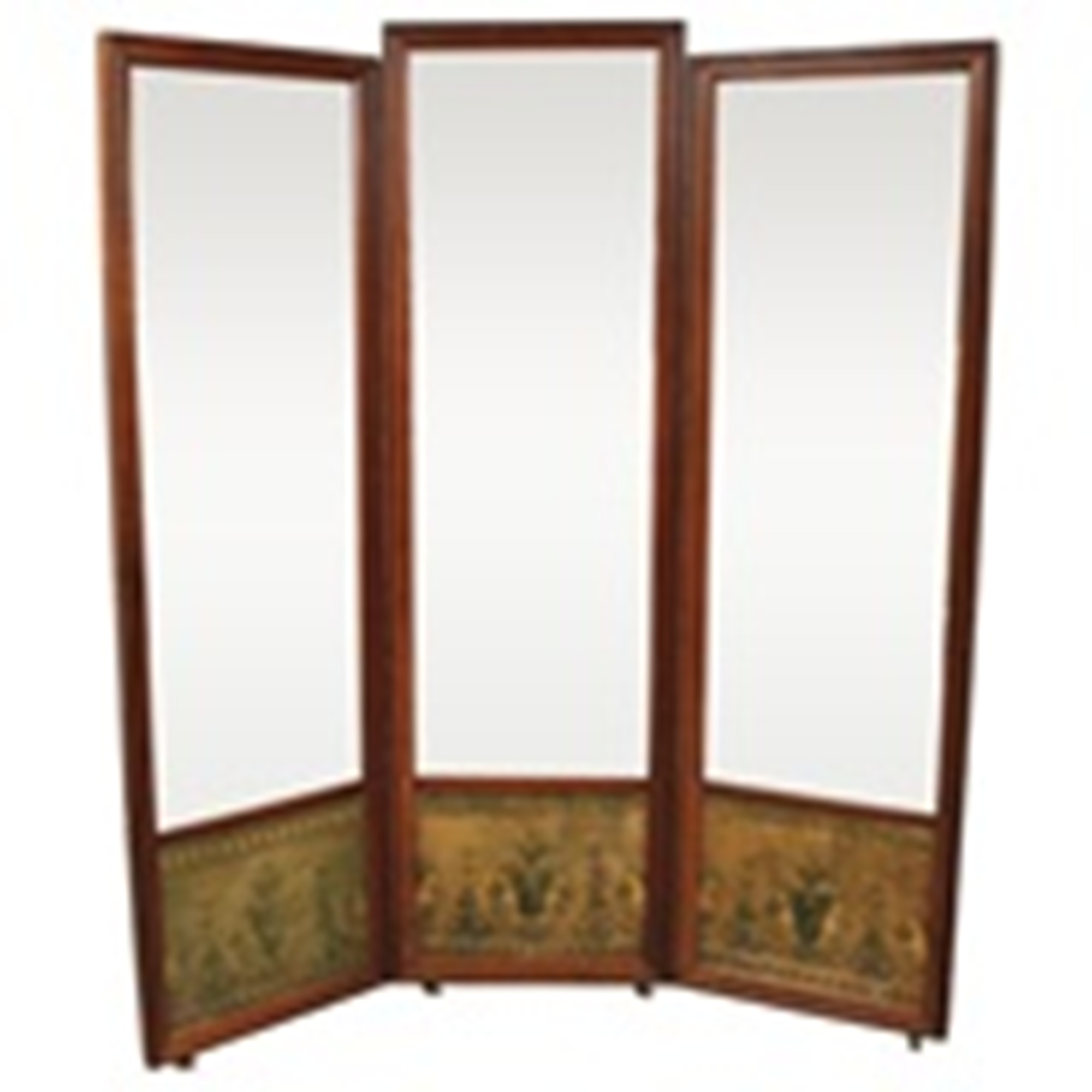 Lotto 188 | Grande specchiera a tre ante Rovere con decorazioni incuoio dipinto a motivi...