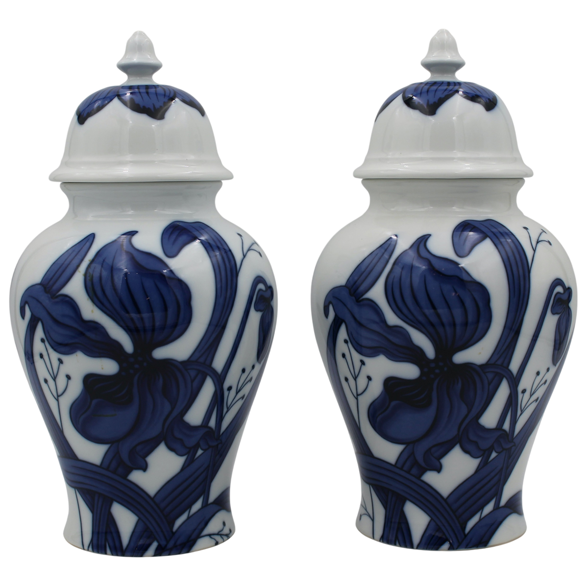 Lotto 192 | Coppia potiche Porcellana decorata a motivi floreali in azzurro su fondo...