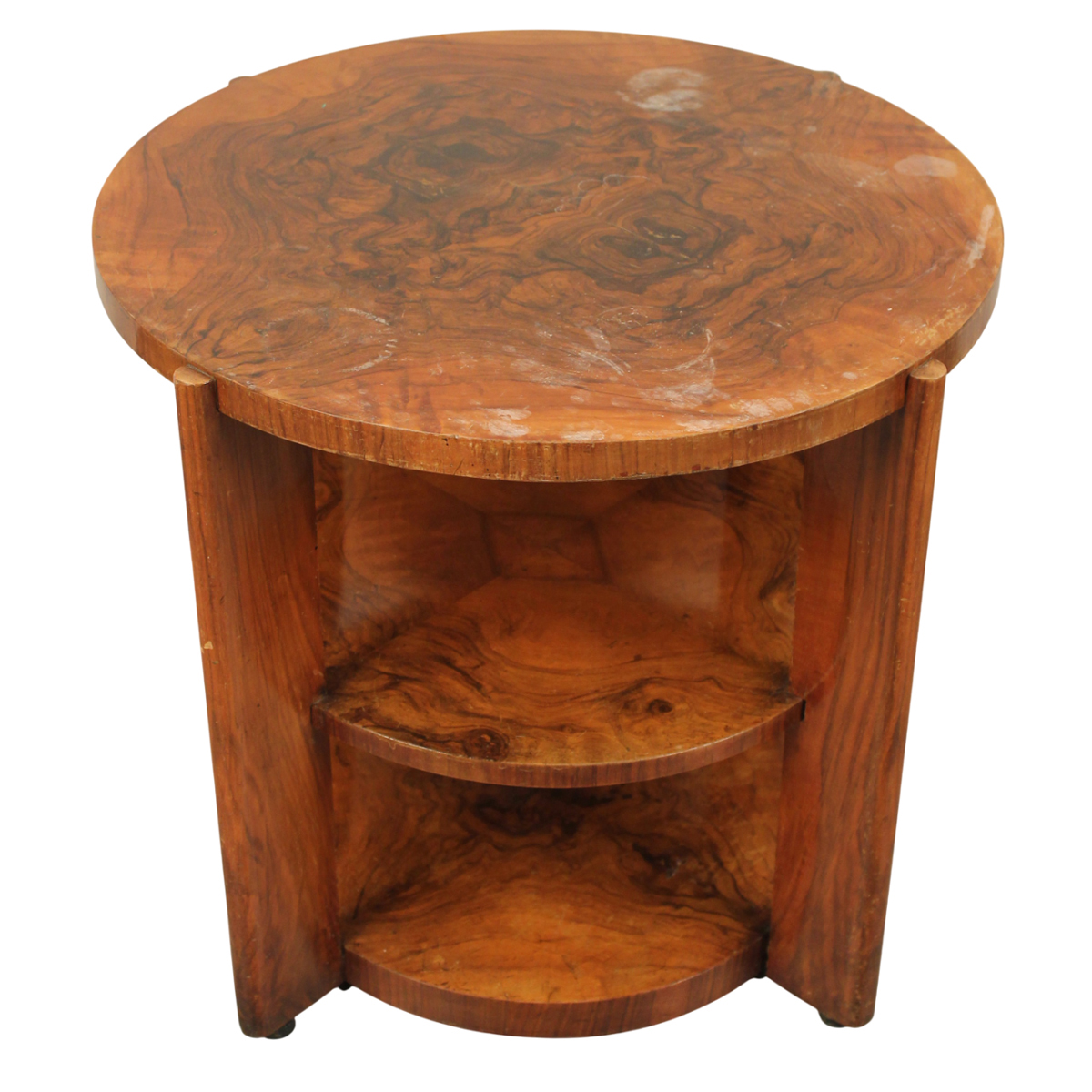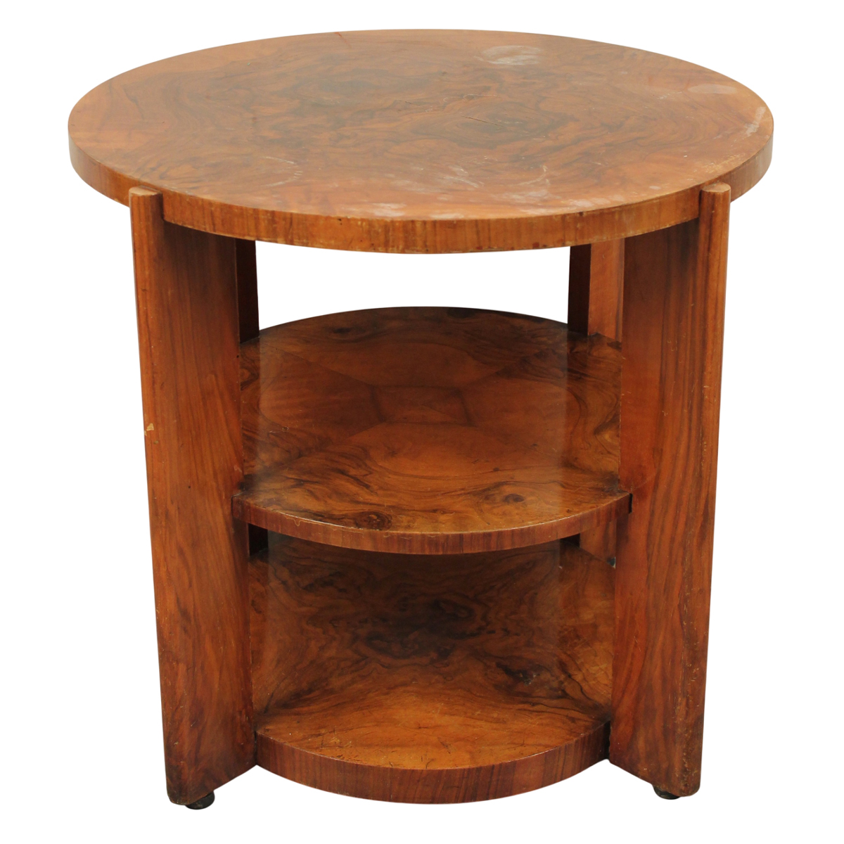 Lotto 200 | Tavolino circolare a ripiani Radica di noce. Sicilia. Epoca art dèco. Cm d 63...