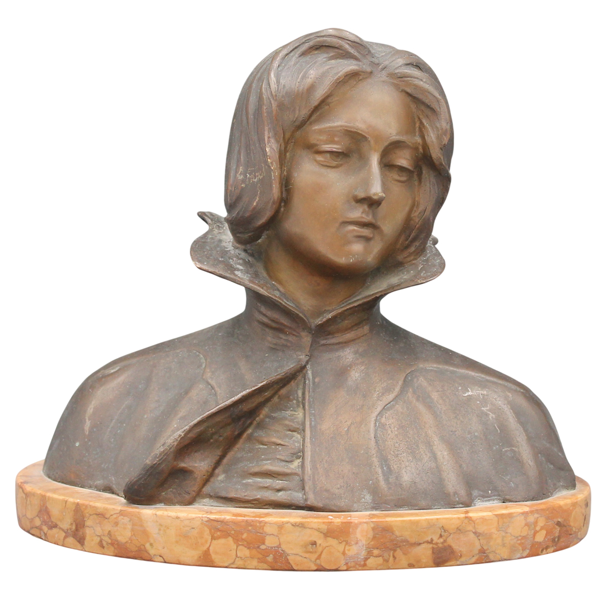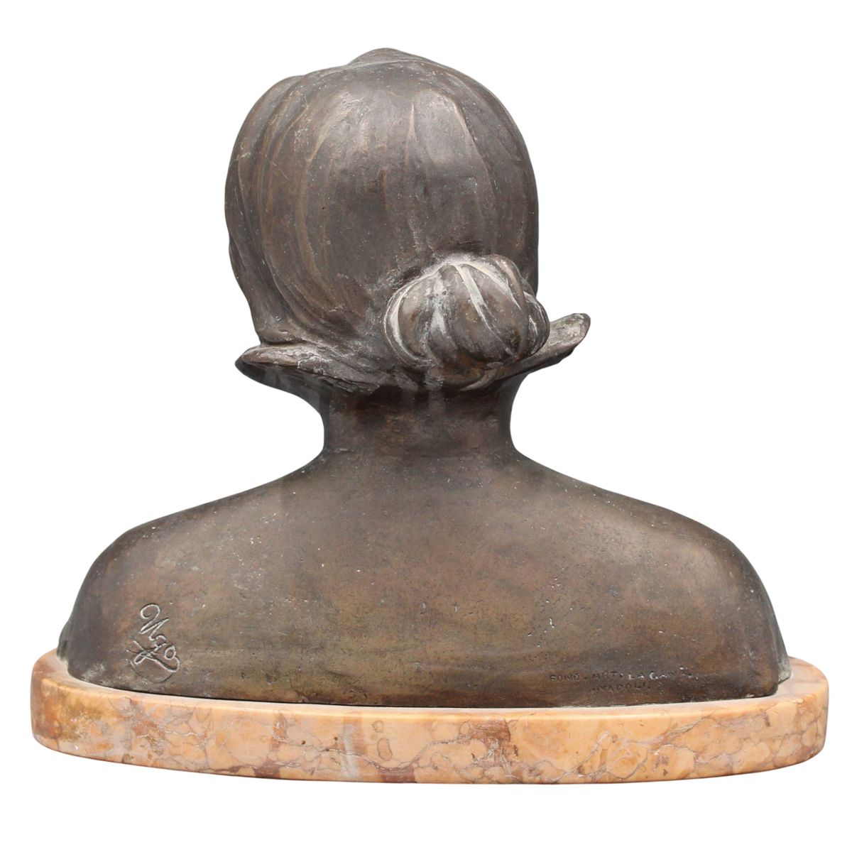 Antonio Ugo (1870/1950) "Donna con bavero" Scultura in bronzo su base in marmo venato. Cm h 22