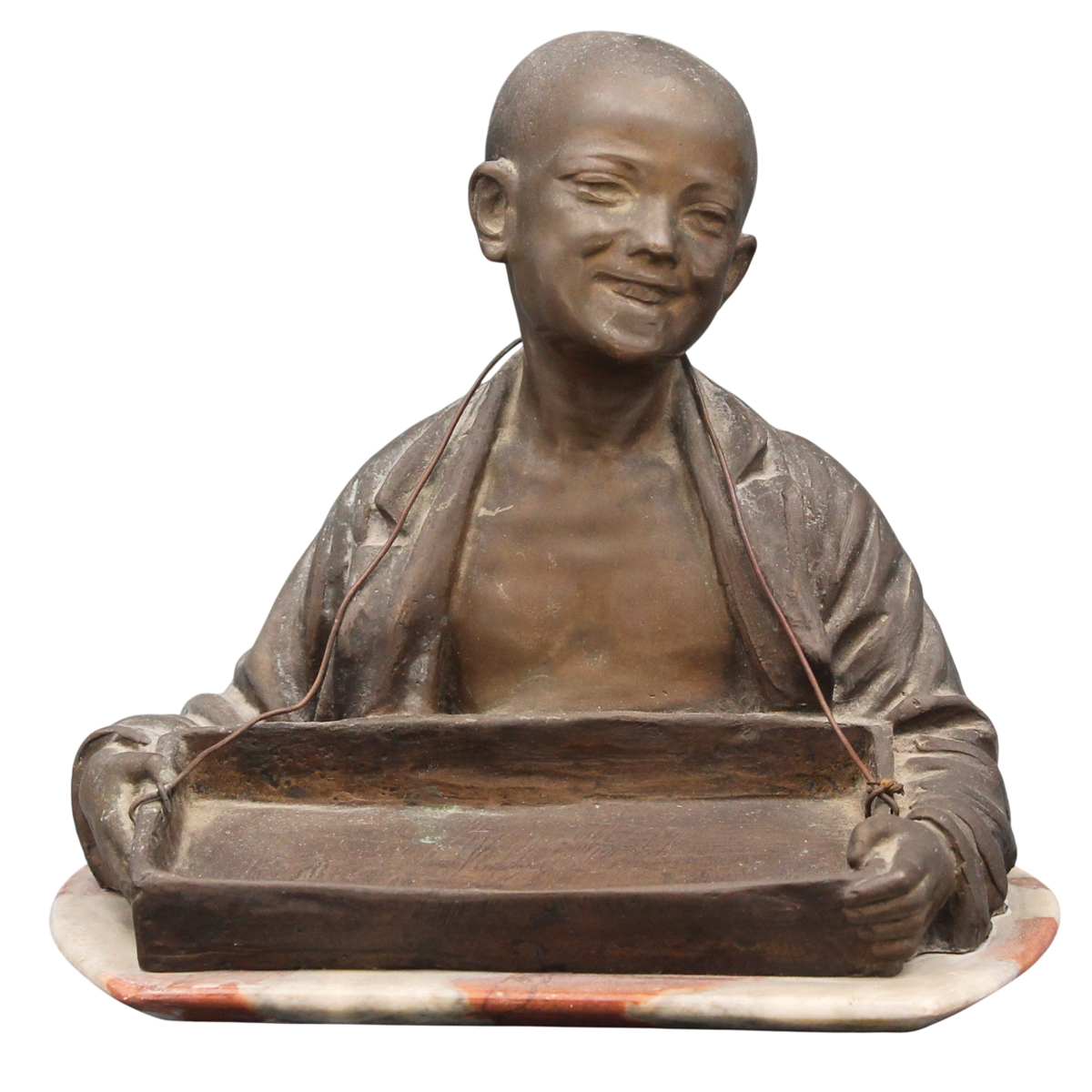 Antonio Ugo (1870/1950) "Fiammiferaio" Scultura in bronzo su base in marmo venato. Cm h 16
