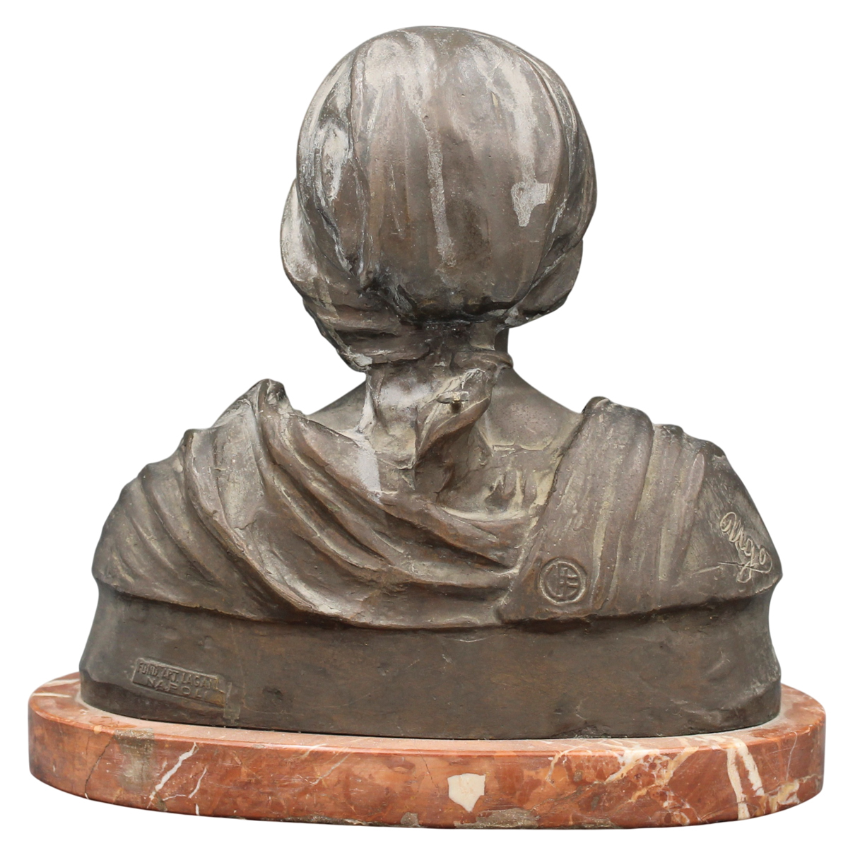 Antonio Ugo (1870/1950) "Madonna" Scultura in bronzo su base in marmo venato. Cm h 26