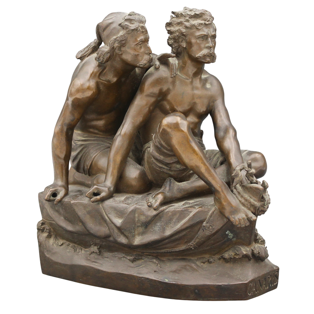 Benedetto Civiletti (1845/1899) "I fratelli Kanaris a Scio" Rara scultura in bronzo patinato. Cm 21x18 h 27
