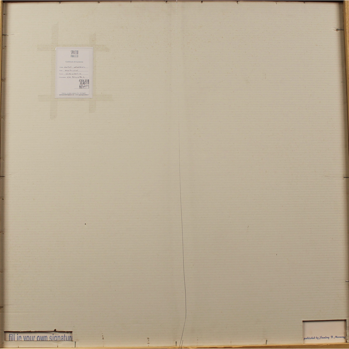 Andy Warhol (1928/1987) "Marilyn" Serigrafia policroma. Sul retro certificazione in azzurro "Sunday B. Morning". Certificato di garanzia della Galeria "Spazio parallelo" Palermo. Cm 91,4x91,4
