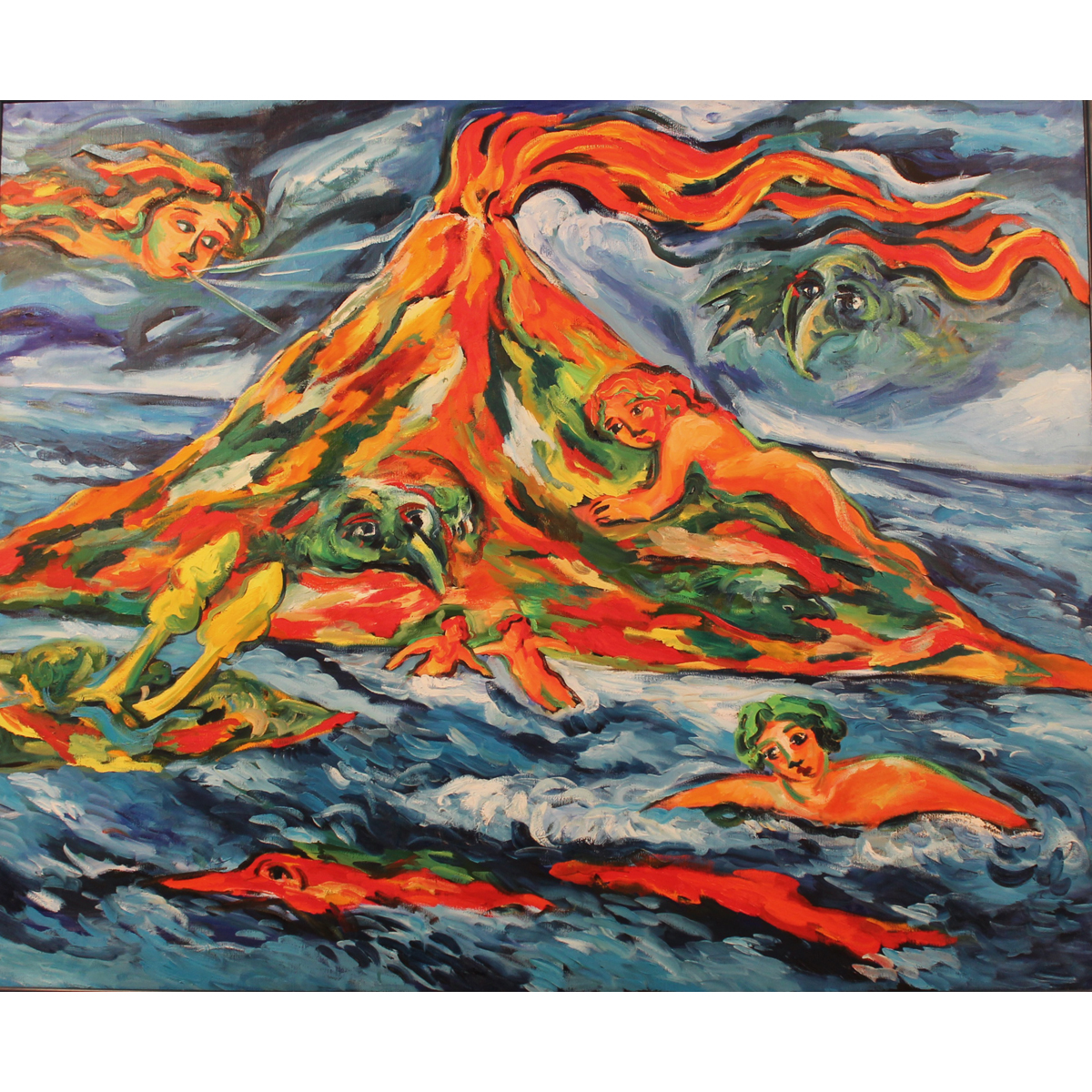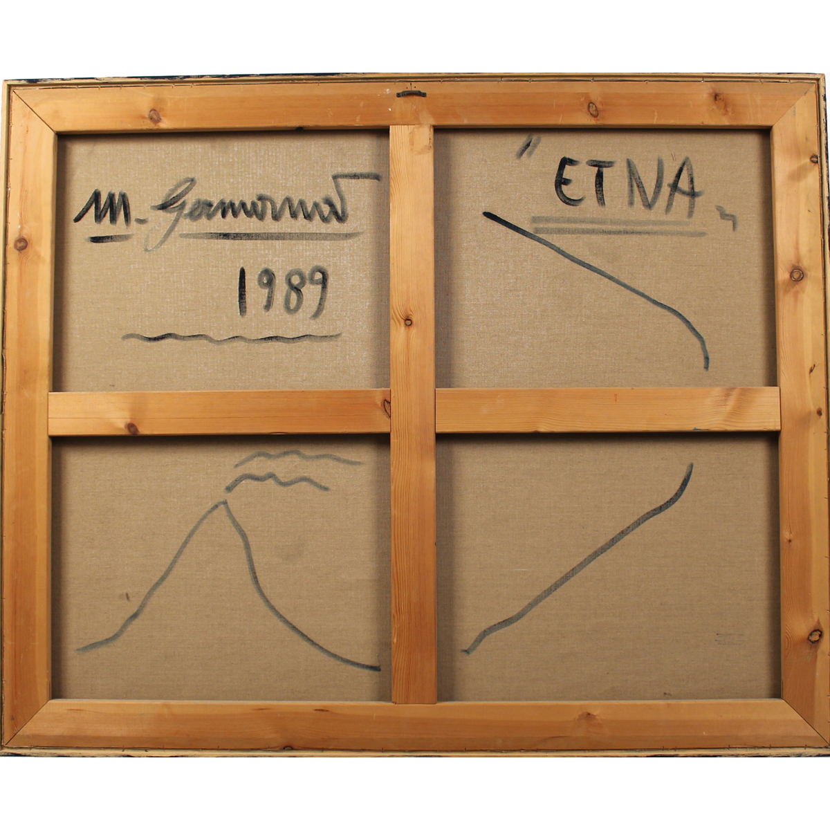Mimmo Germanà (1944/1992) "Etna" Dipinto ad olio su tela in cornice. Datato 1989. Archivio generale dell'opera pittorica a cura della Galleria d'Arte "L'Acquario" n° 762. Opera esposta nella Mostra "Sogno petico" Ciminiere di Catania. Cm 130x160