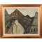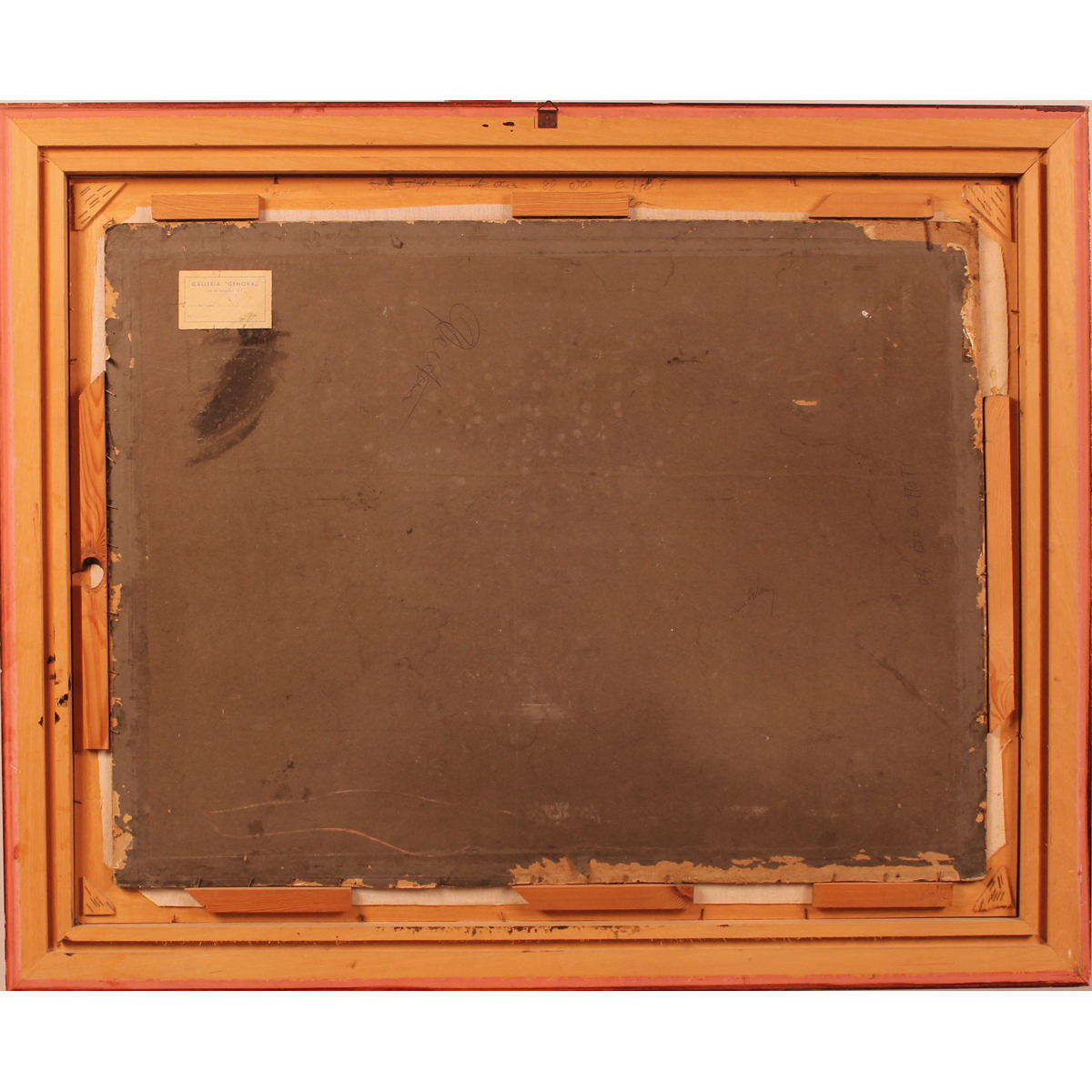 Paesaggio astratto con figure Dipinto ad olio su cartone in cornice dorata. Firmato L. Viani. Secolo XX. Cm 72x94