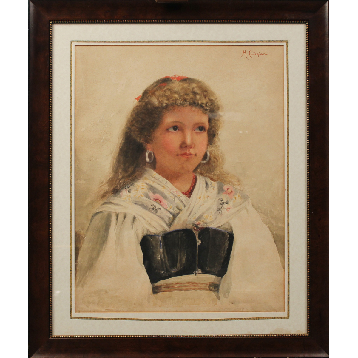 Michele Cortegiani (1857/1928) "Figura di giovane popolana" Acquerello su carta in cornice. Cm 46x58