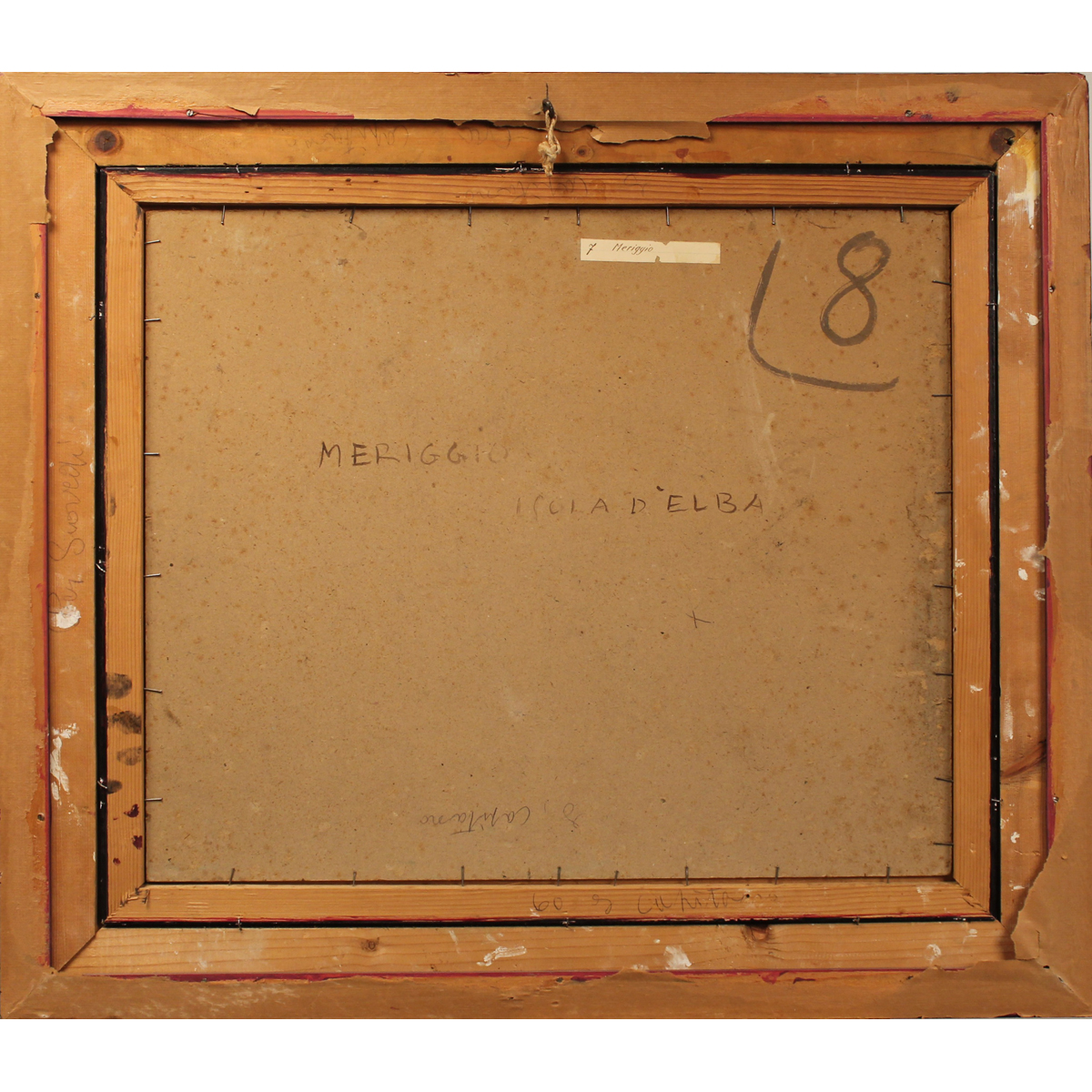 Carlo Domenici (1897/1981) "Meriggio, isola D'Elba" Dipinto ad olio su cartone in cornice in legno dorato. Cm 50x60