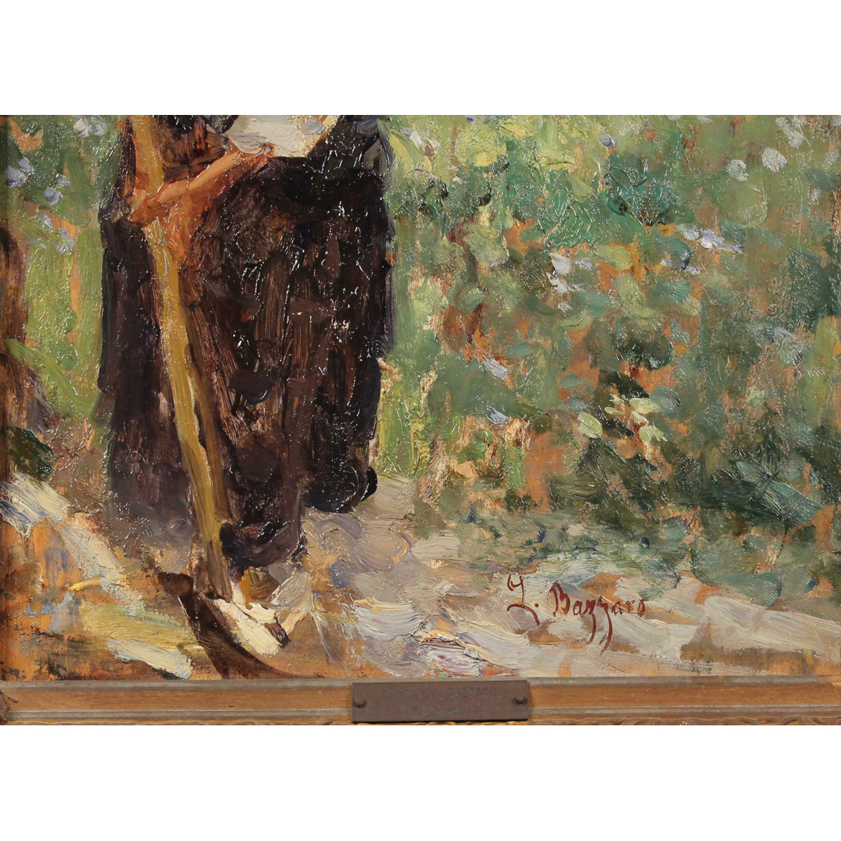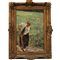 Leonardo Bazzaro (1853/1937) "Nei campi" Dipinto ad olio su tavola inb cornice in legno dorato (danni alla cornice). Cm 50x34